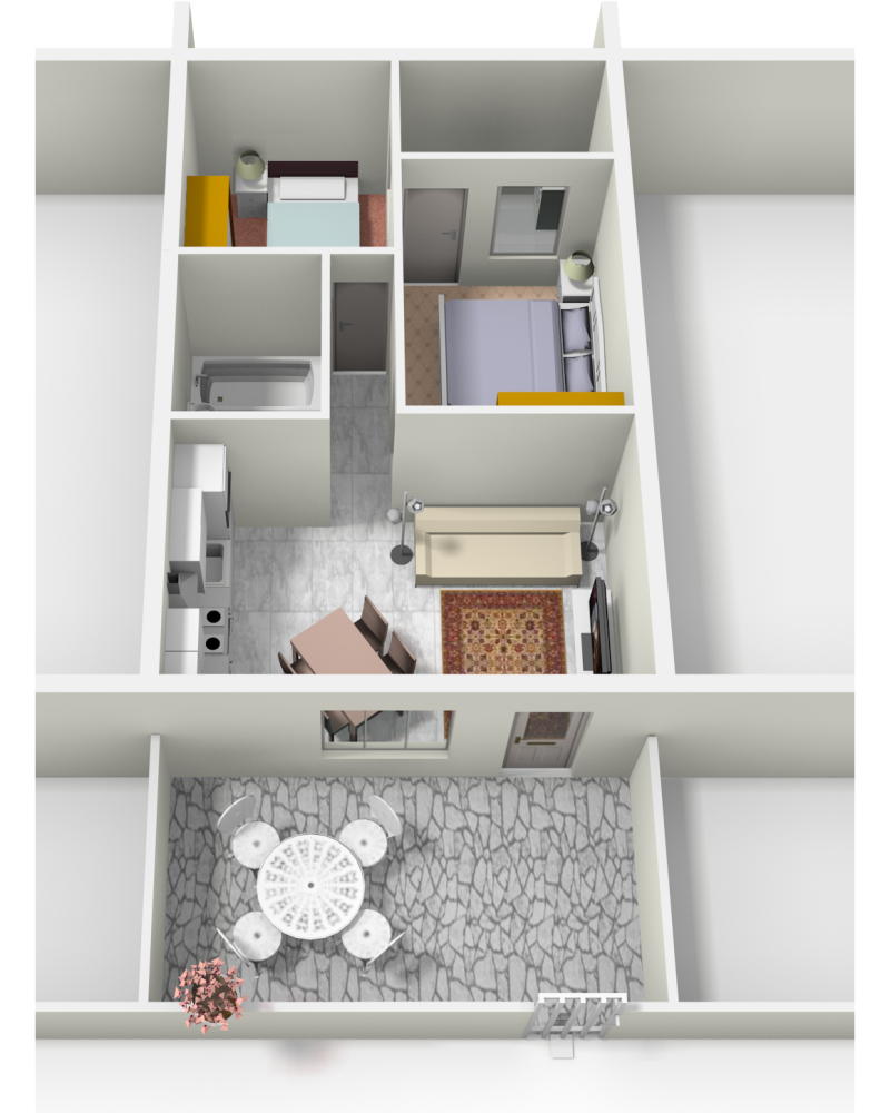 Plano de planta y vista aérea.